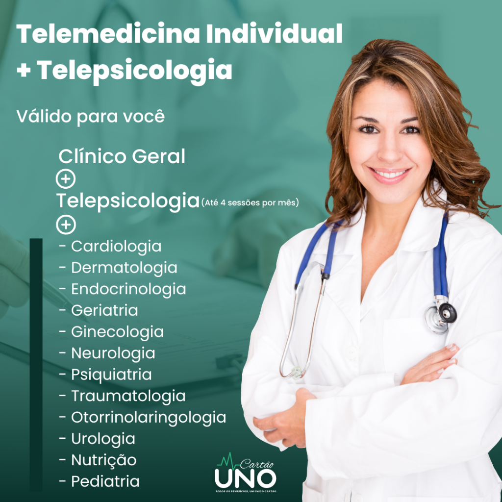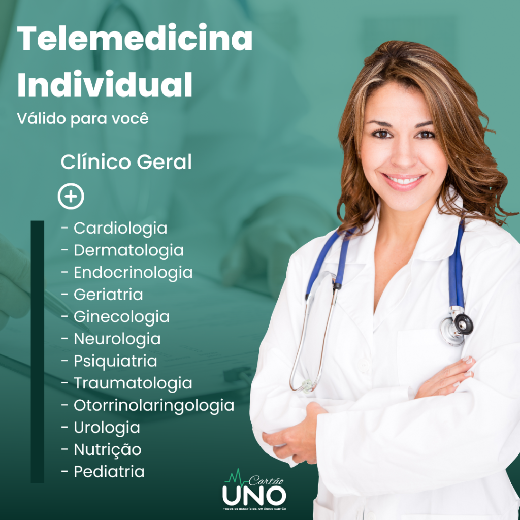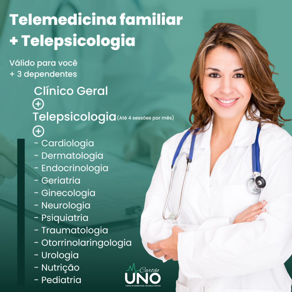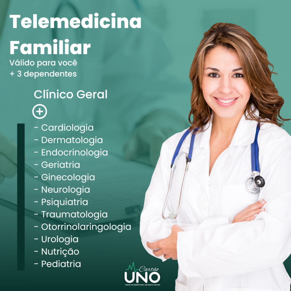 Com o Cartão Uno, terá conveniência e qualidade. Evite deslocamentos até clínicas. Nossa telemedicina permite consultas com especialistas no conforto de sua casa.